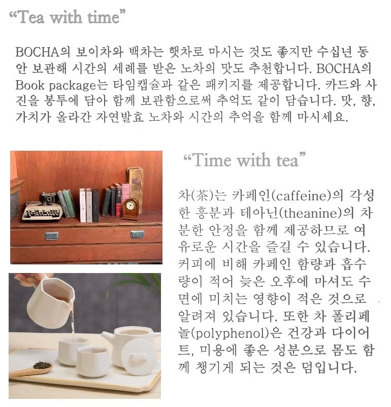 품위있는 박스 안에 선물용 茶소개 리플릿과 추억을 담을 수 있는 카드와 사진, 보관봉투가 함께 제공됩니다.